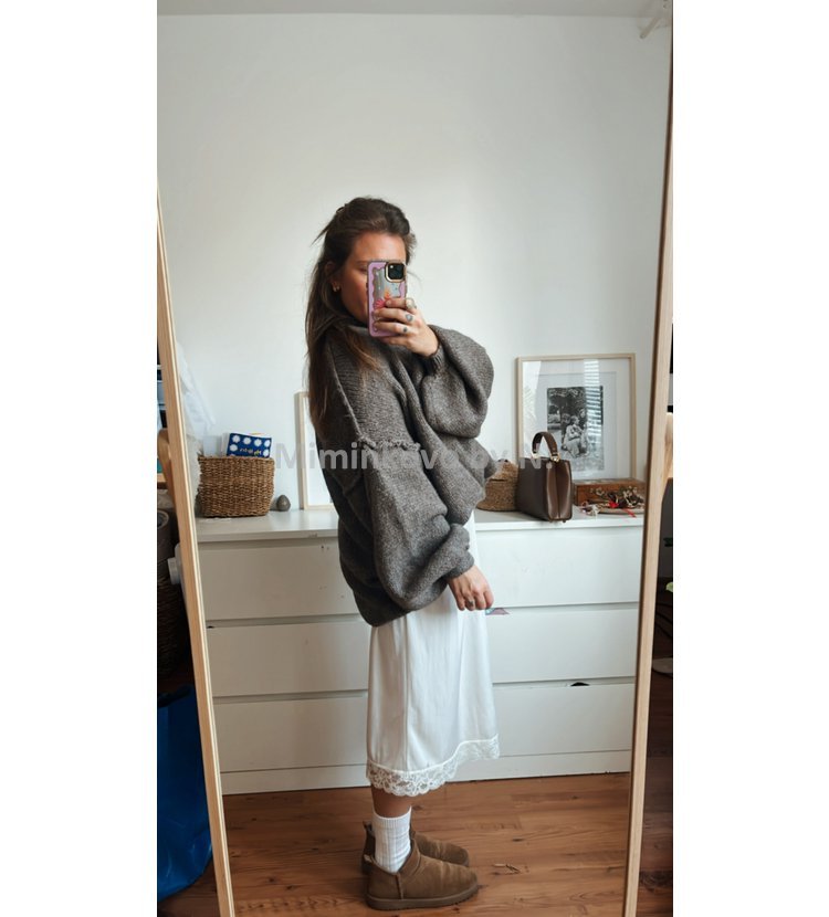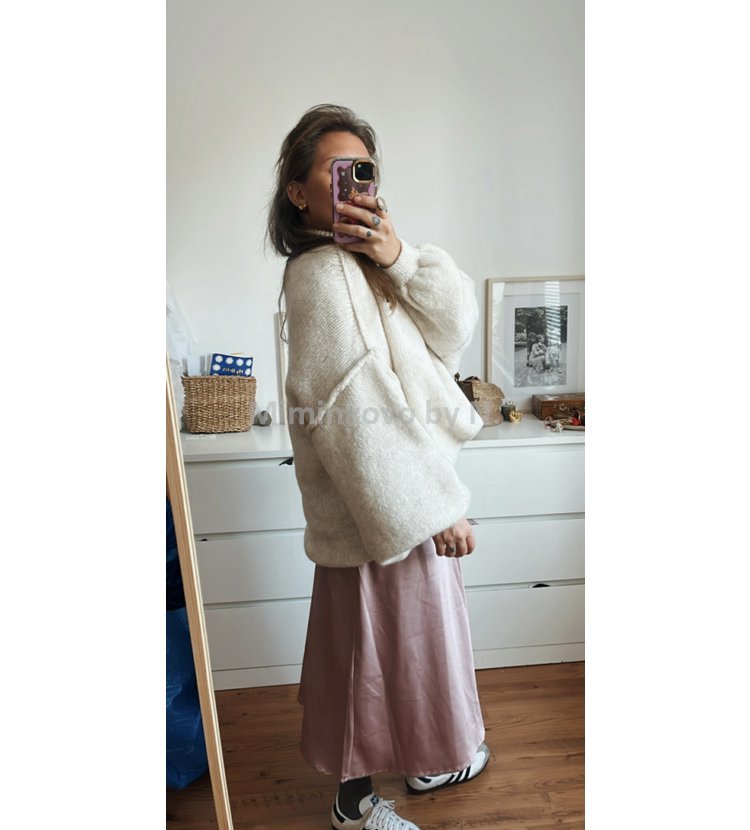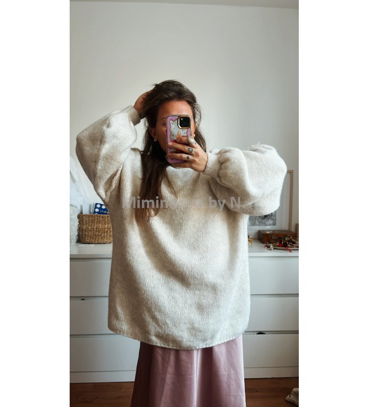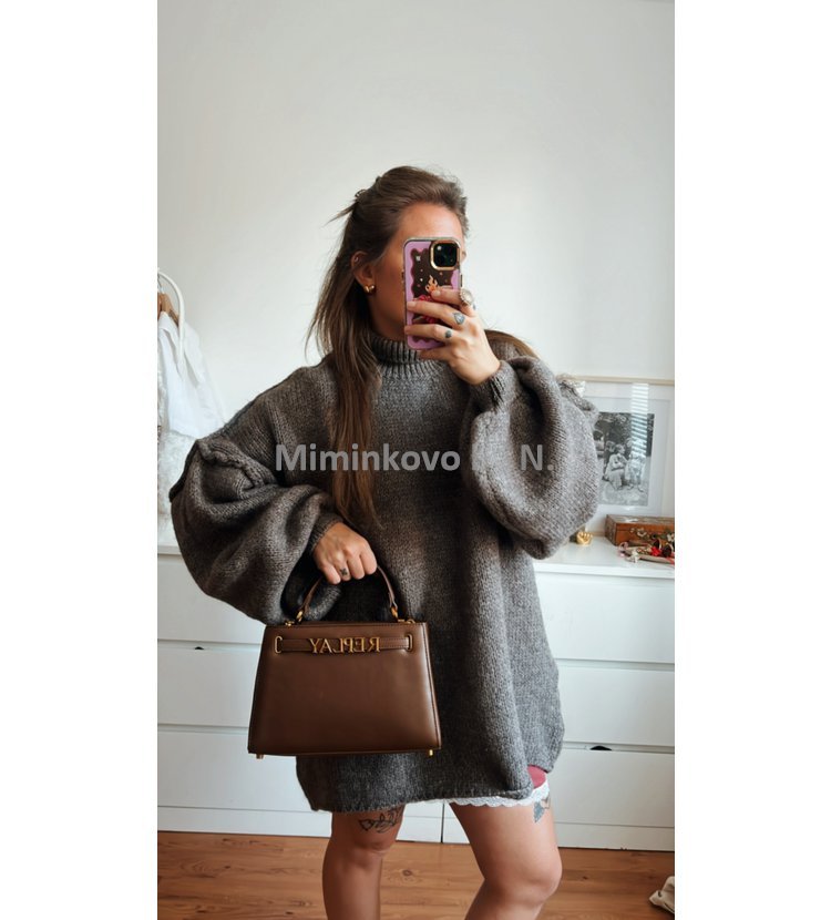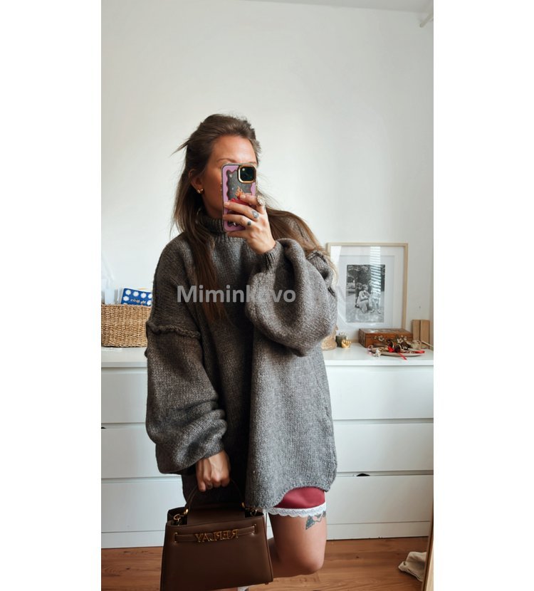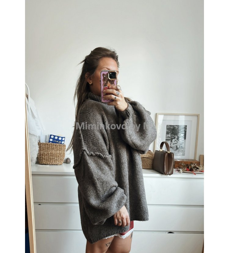 Má oversized střih, široký balónový rukáv, a snížená ramena.